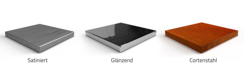 Sie können eine glänzende oder satinierte Oberfläche wählen. Für den Zuschnitt von Edelstahl verwenden wir die Standardqualität 304 und optional 316er Stahl.