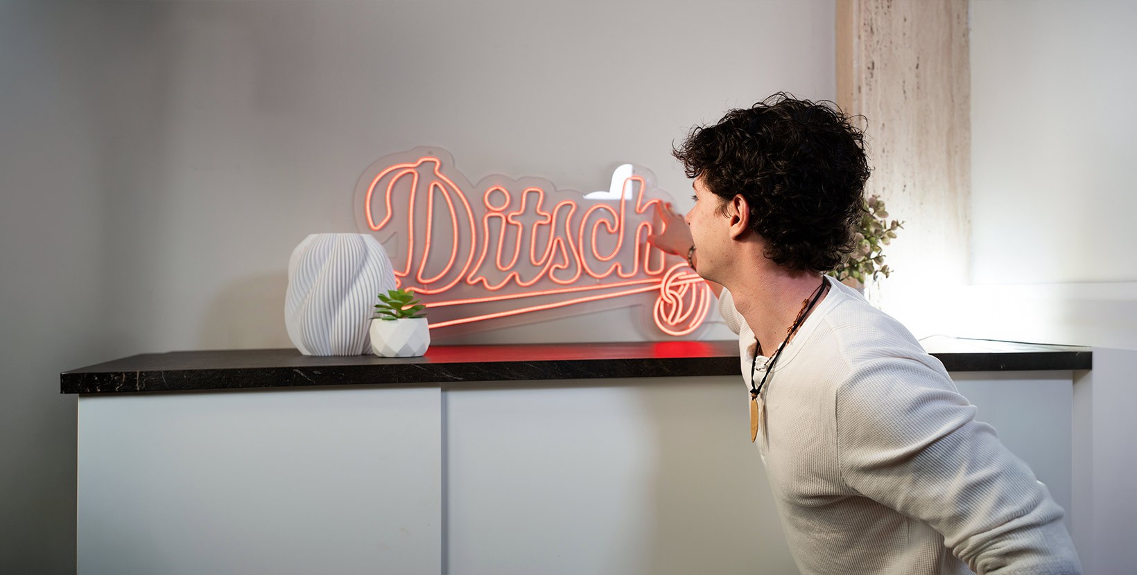 Sie möchten ein individuelles Neonschild personalisieren? Kein Problem, geben Sie uns einfach Ihre Idee, Ihr Lieblingswort oder einen Satz, den wir in leuchtende Buchstaben verwandeln dürfen. Wir formen jeden Buchstaben mit größter Sorgfalt von Hand, so entstehen einzigartige Neonschriftzüge, genau nach Ihren Vorstellungen.
