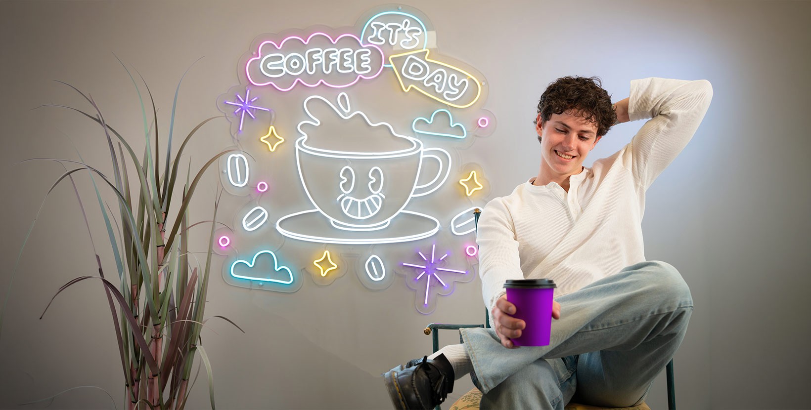 Unsere Neonschilder verbrauchen etwa 8 Watt pro Meter und werden mit einem 12-Volt-Transformator geliefert, der an jede normale 220-Volt-Steckdose angeschlossen werden kann. Jedes Schild kommt mit einem 2 Meter langen, transparenten Kabel, perfekt für eine saubere Wandmontage ohne sichtbare Technik.