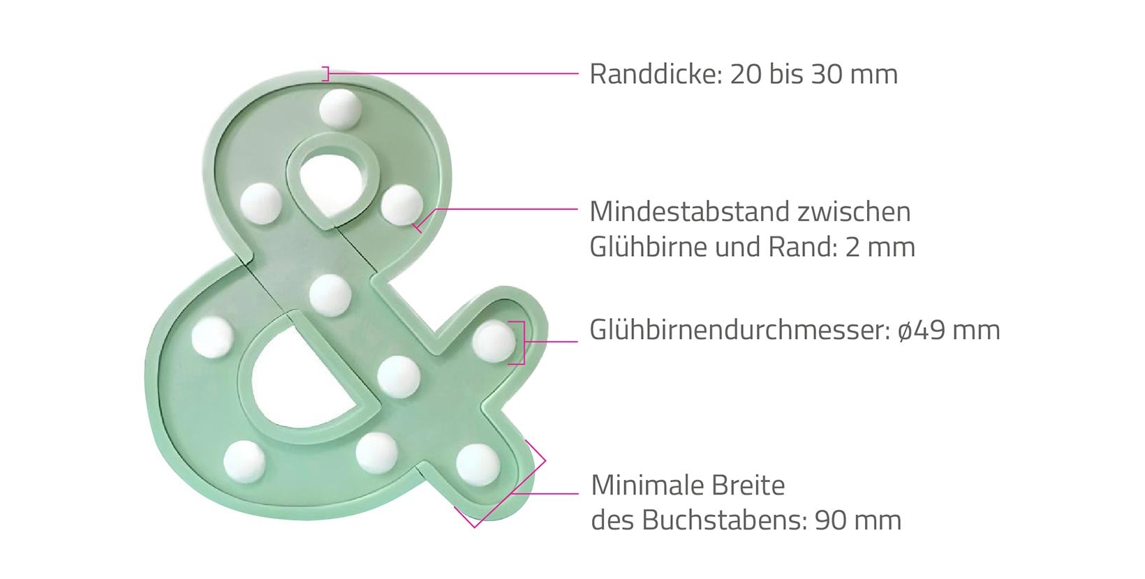 Mindestabstand zwischen Glühbirne und Rand: 2 mm