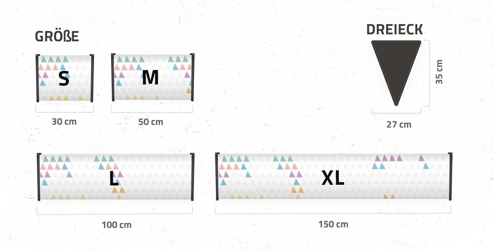 | Breite | S 30 cm │ M 50 cm │ L 100 cm │ XL 150 cm |