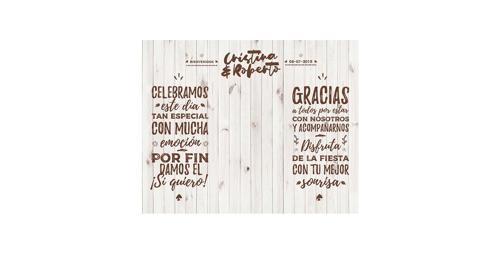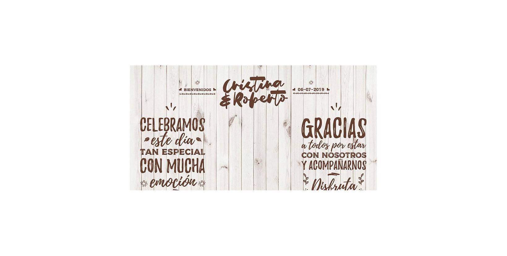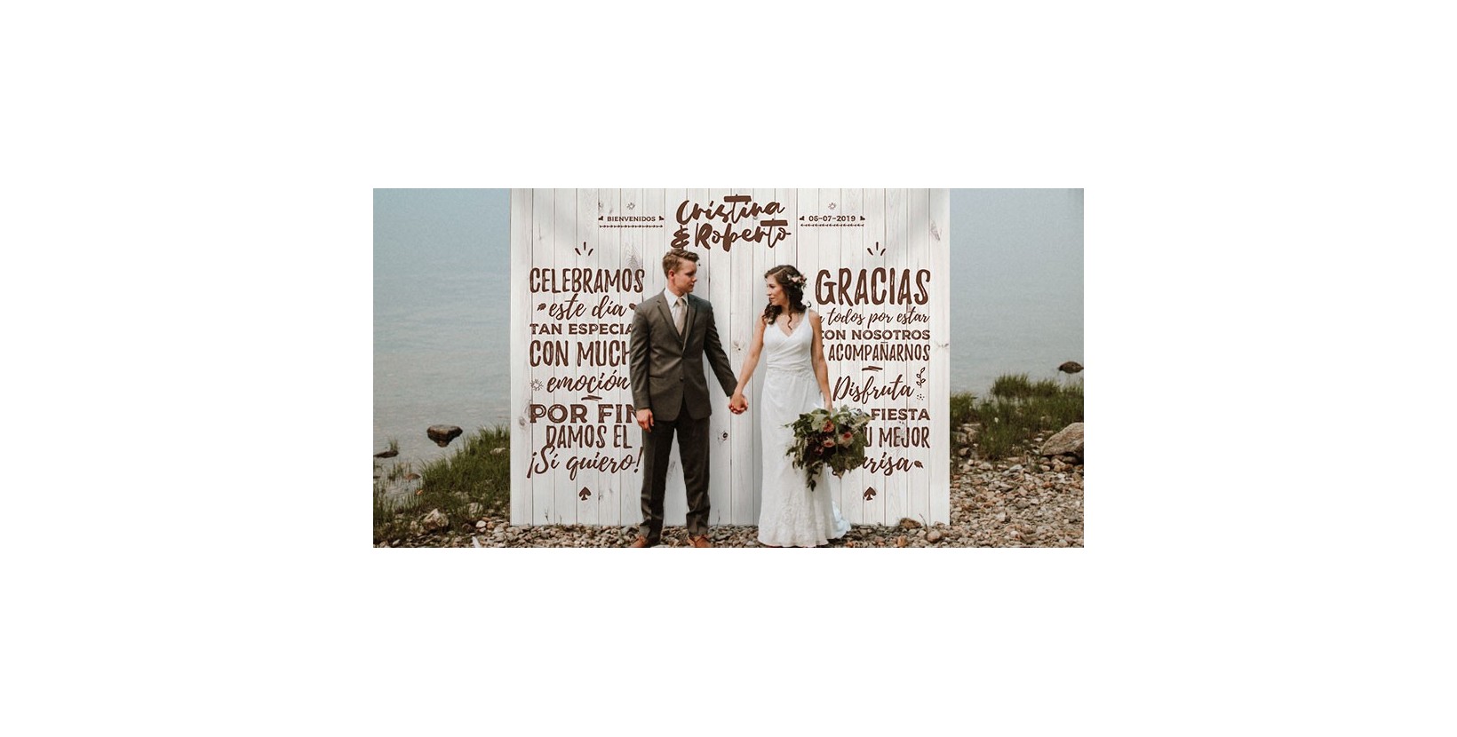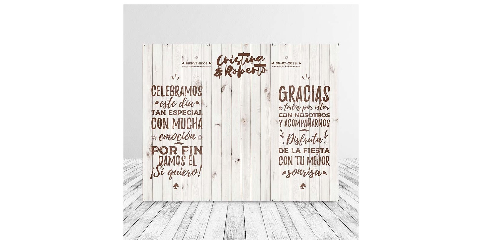 Nuevo photocall de madera rústica vintage para la colección de nuestro catálogo. Esta vez con un toque vintage que tanto nos gusta y una composición pensada justamente para vosotros con la madera blanca que también nos enamora a todos. Este photocall de boda nace de nuestro mayor éxito, para dar más variedad en gustos y colores dentro de una misma idea. ¡Disfrútalo!