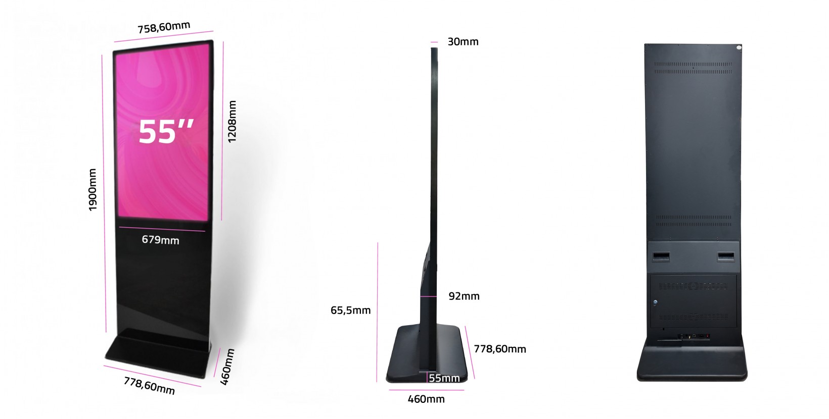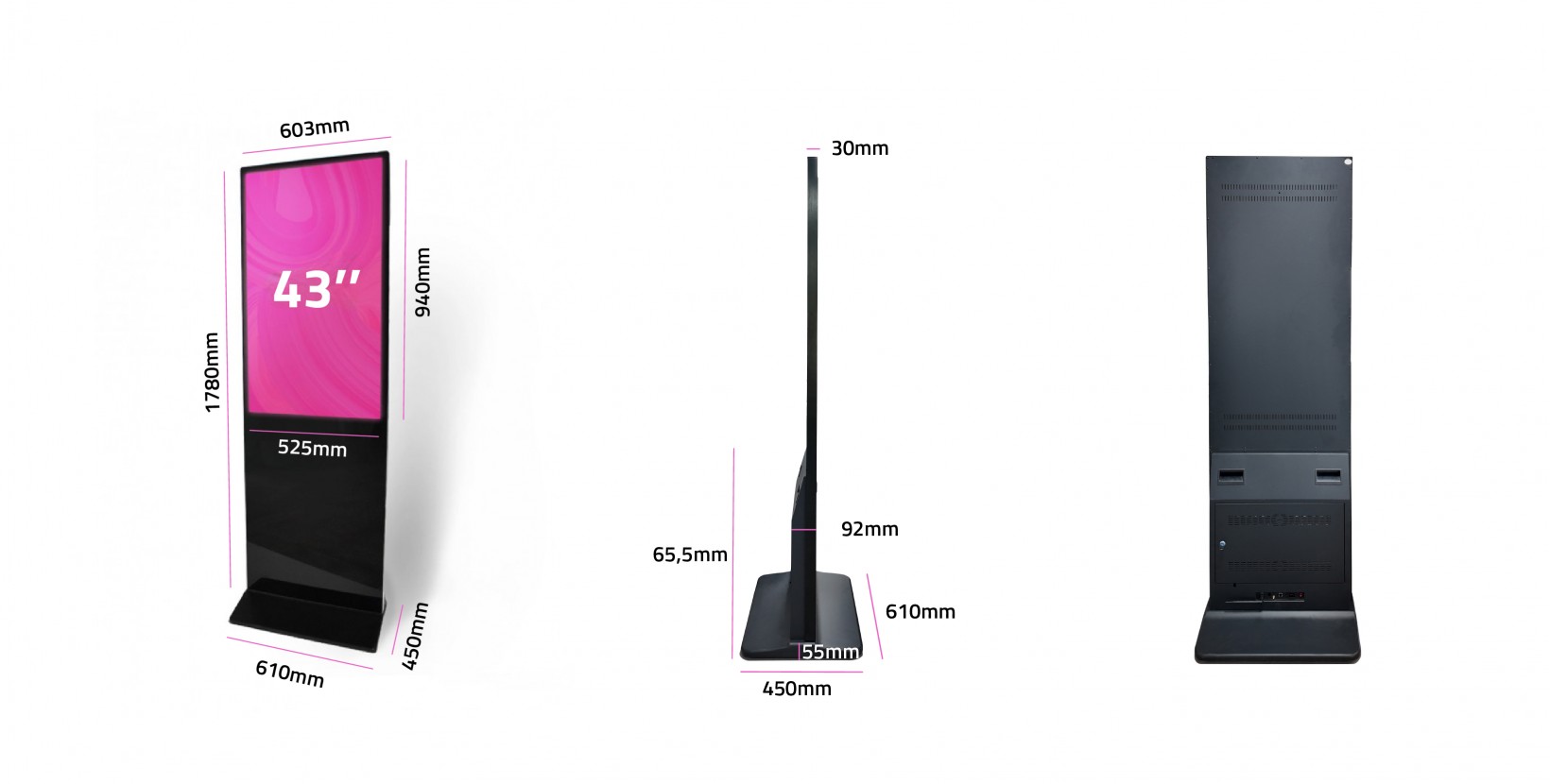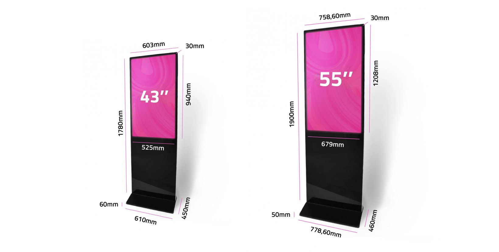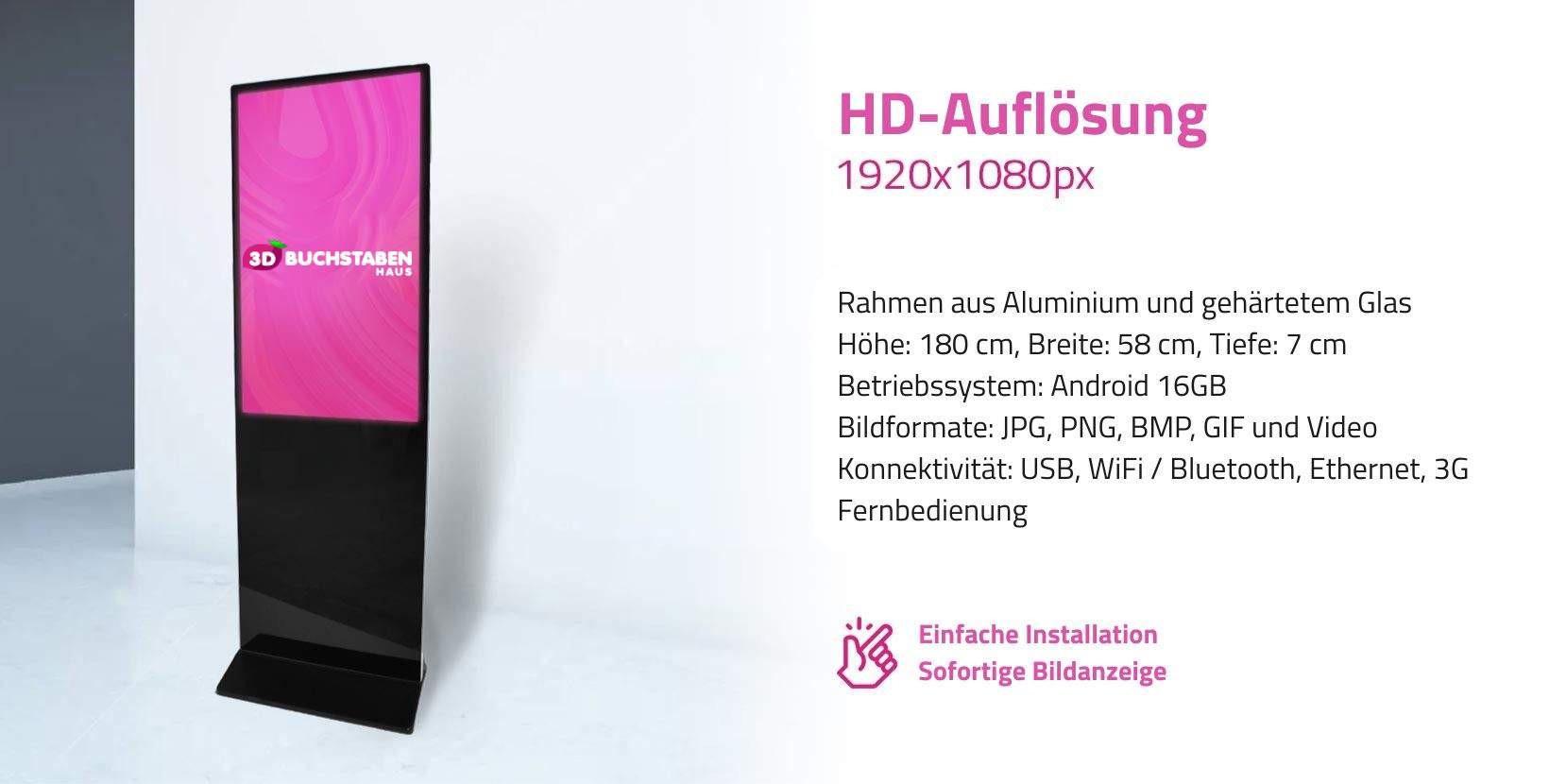 Digitale, interaktive LED-Displays in verschiedenen Größen, verfügbar in Full HD. Ideal für Werbevideos und digitale Beschilderung in Innenbereichen von Einkaufszentren, Geschäften oder Messeständen. Mit Netzwerk-, USB- und WLAN-Anschluss können Inhalte bequem aus der Ferne aktualisiert werden.