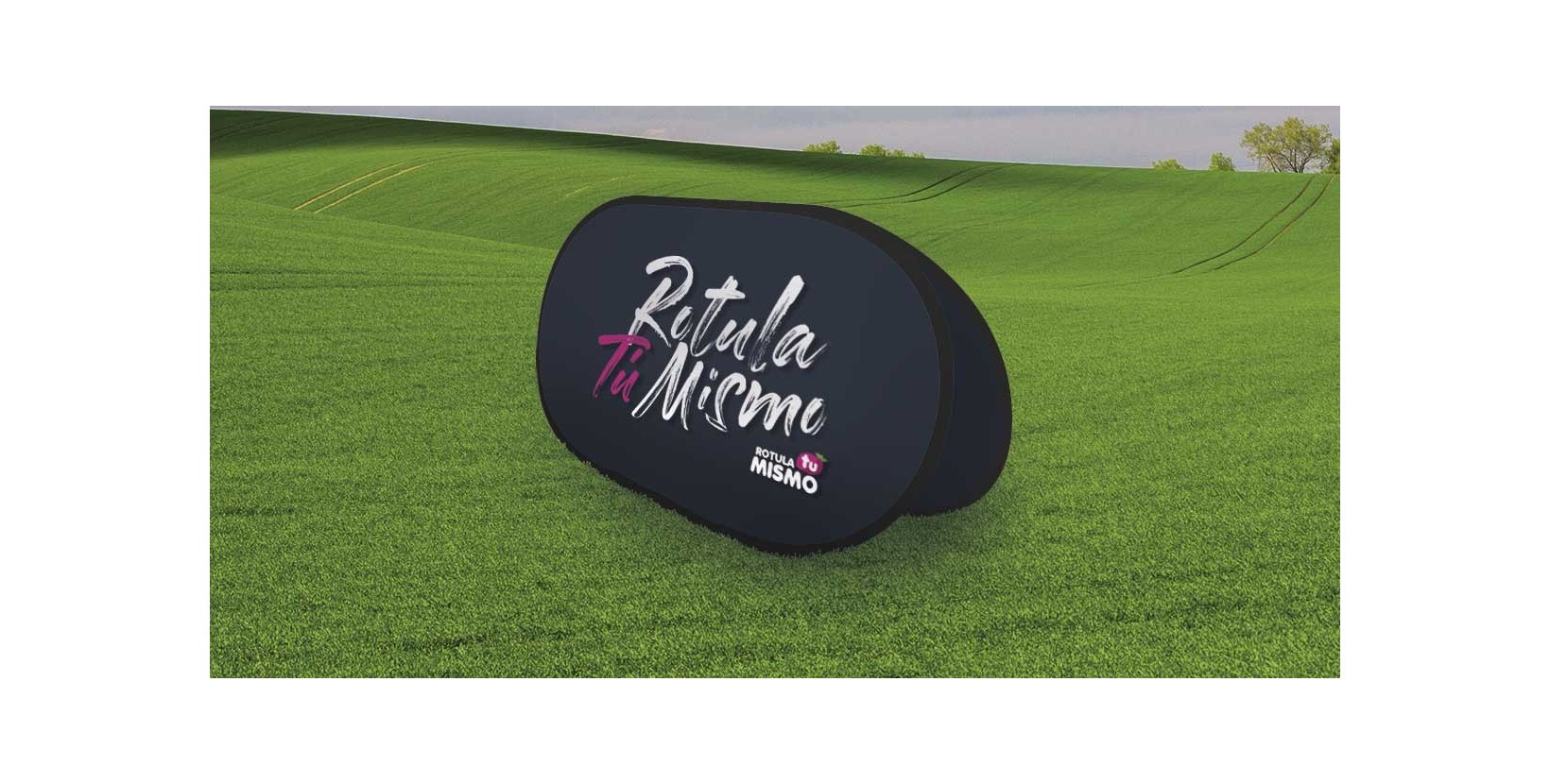 Der Golf Banner ist ein hochwertiges Werbedisplay mit beidseitigem System, ideal für den Einsatz bei Outdoor-Events. Mit seiner ovalen Form bietet es eine ästhetisch ansprechende Präsentation für jede Art von Veranstaltung. Größe: 1 × 2,30 m.