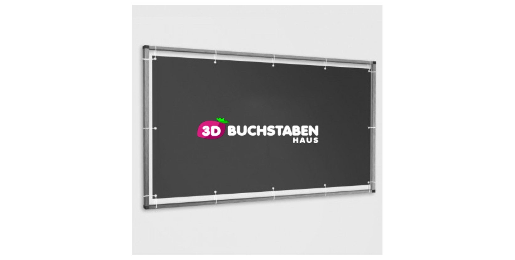 Das Banner selbst sollte 7 cm kleiner als das Gestellmaß sein, damit es optimal gespannt wird.