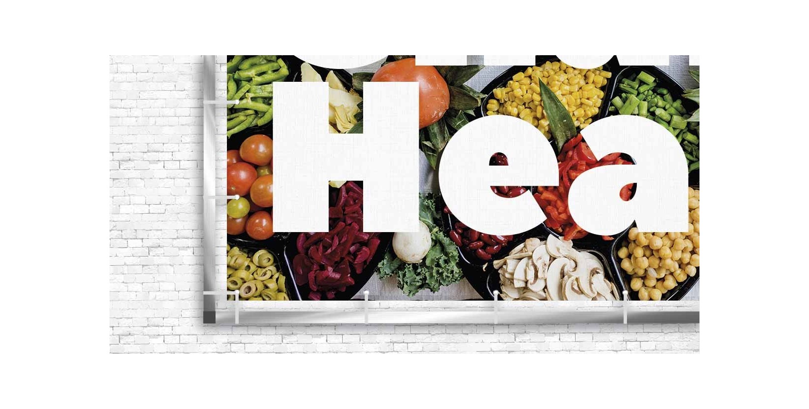 Unsere Bannergestelle für Werbebanner bestehen aus quadratischen Aluminiumrohren (3 cm) mit Steckverbindern für einfache Montage. Die Wandbefestigung erfolgt über Schrauben und Abstandshalter von 3 cm. Diese großformatige Struktur eignet sich besonders für Fassaden von Industriehallen oder großen Einzelhandelsflächen.