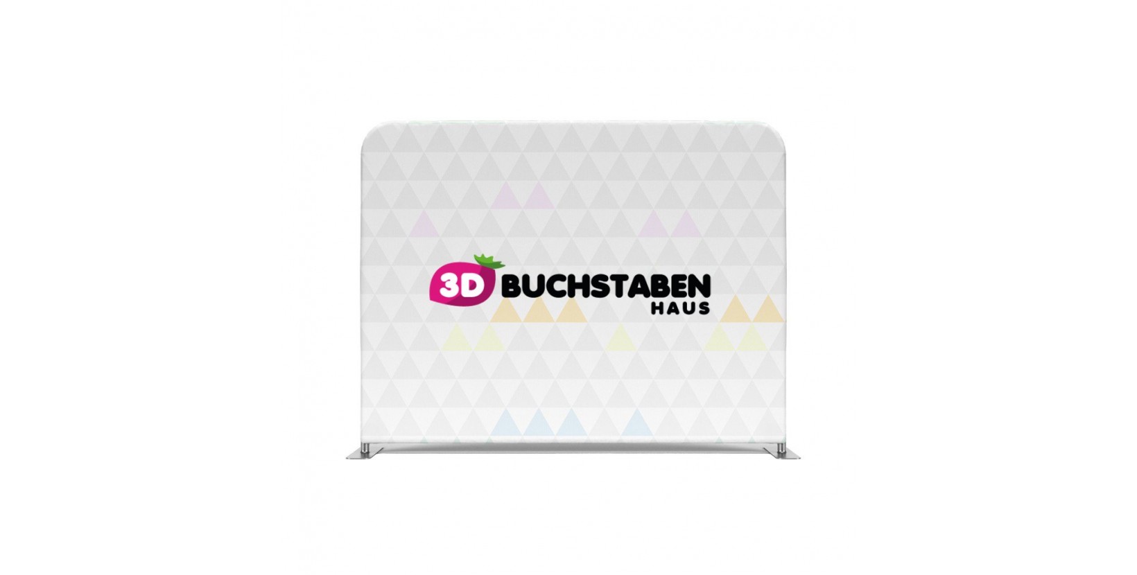 Fotowand rohrförmig : leicht, tragbar und einfach zu montieren. Geeignet für Veranstaltungen, Präsentationen und Messen. Erhältlich in verschiedenen Größen (150x230cm bis 600x300cm) für eine professionelle und persönliche visuelle Wirkung.