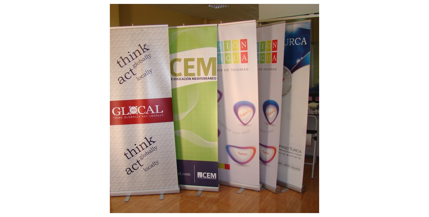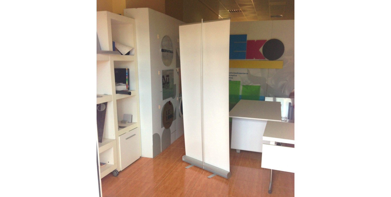 Möchten Sie Ihr Unternehmen bewerben? Dieses Roll-up ist die perfekte Lösung: Aufrollbar, bedruckt mit Ihrem Design und transportfreundlich.