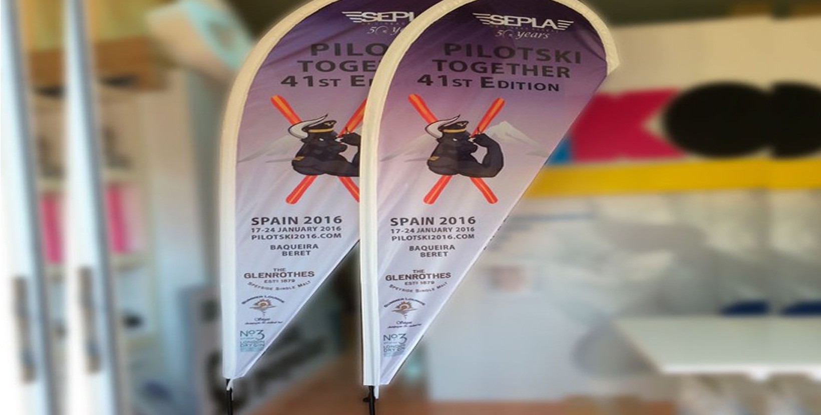 Die Struktur besteht aus eloxiertem Aluminium in Schwarz oder Weiß; auf Wunsch sind auch andere Farben möglich. Im Preis enthalten ist der digitale Doppeldruck; auf Anfrage kann die Tropfenfahne auch mit Folienplott geliefert werden.