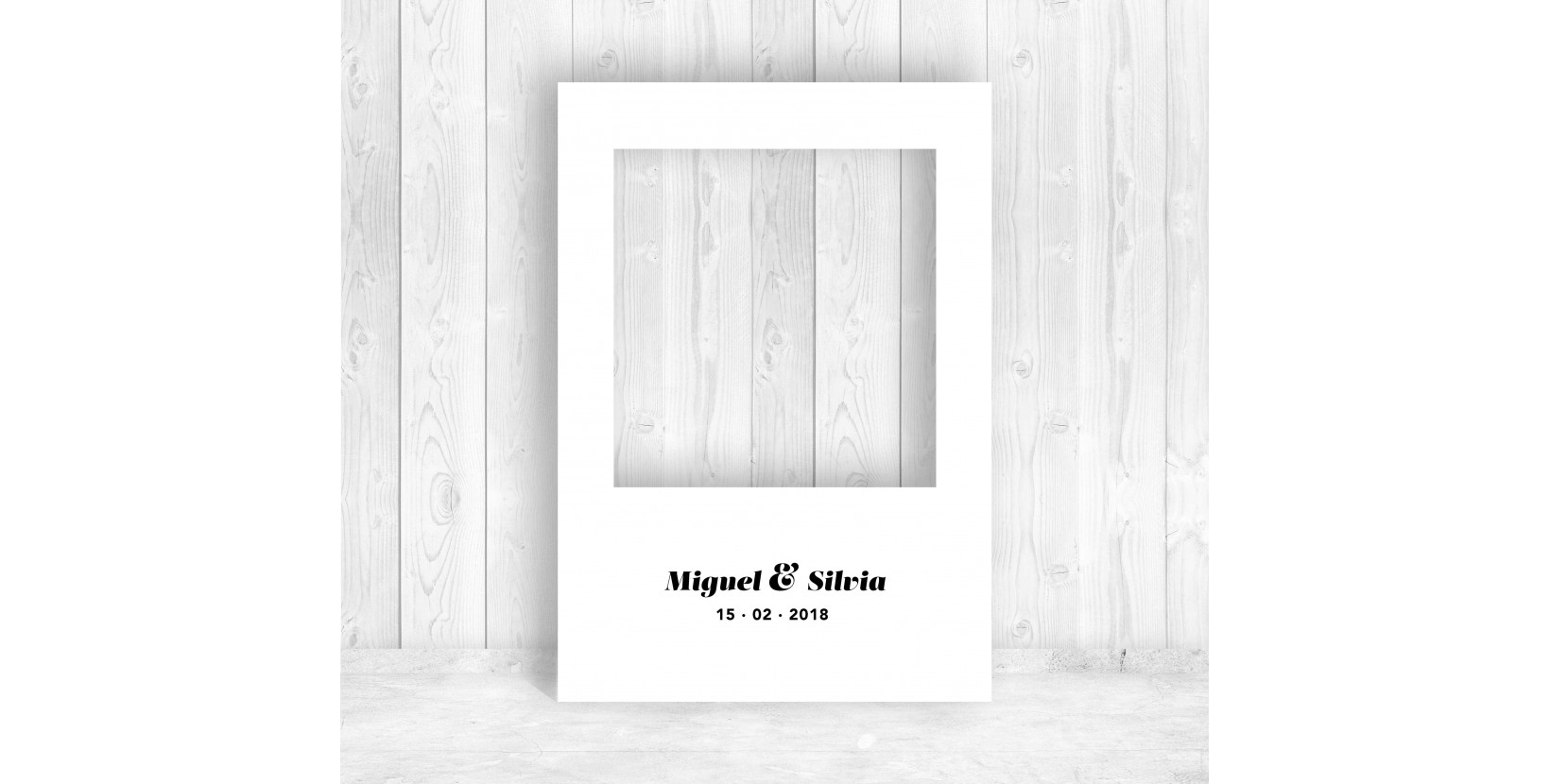 El Marco Polaroid para Boda es el complemento perfecto para tu Photocall. Nuestro sencillo y atractivo marco personalizable con los nombres y la fecha de vuestra boda.