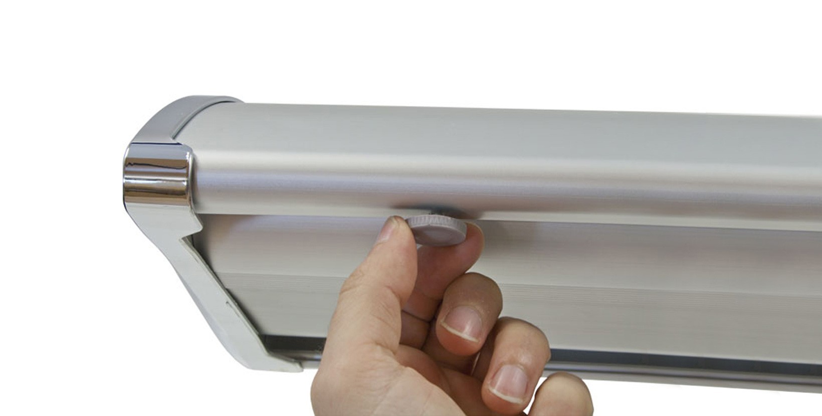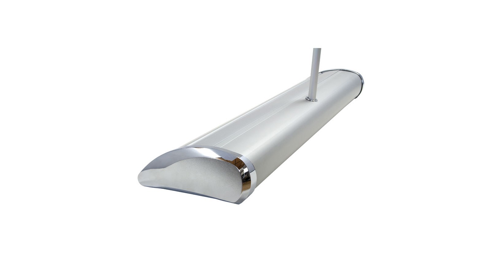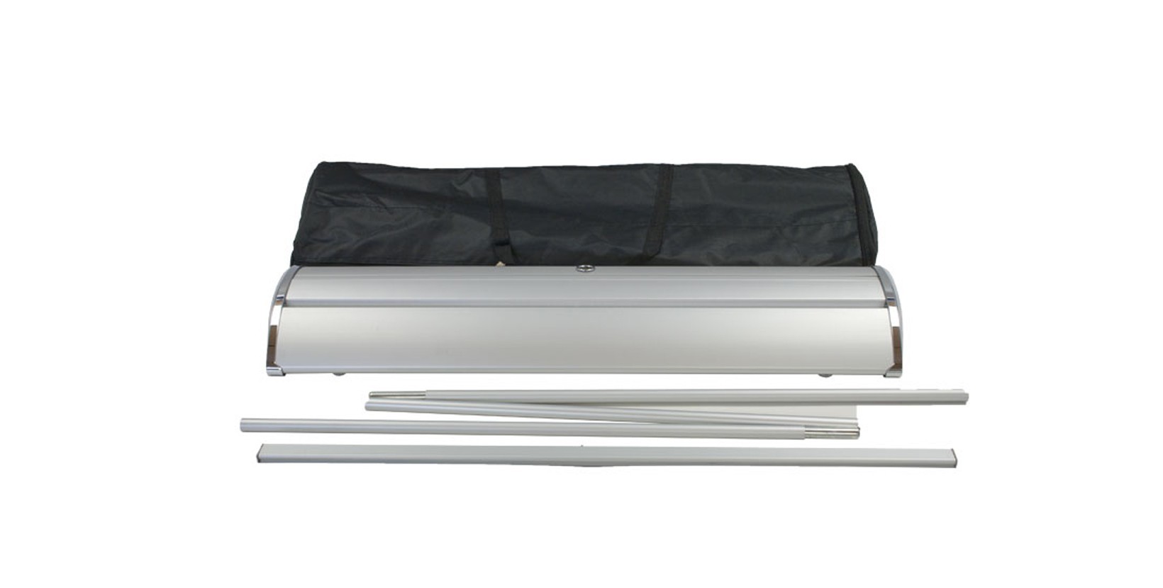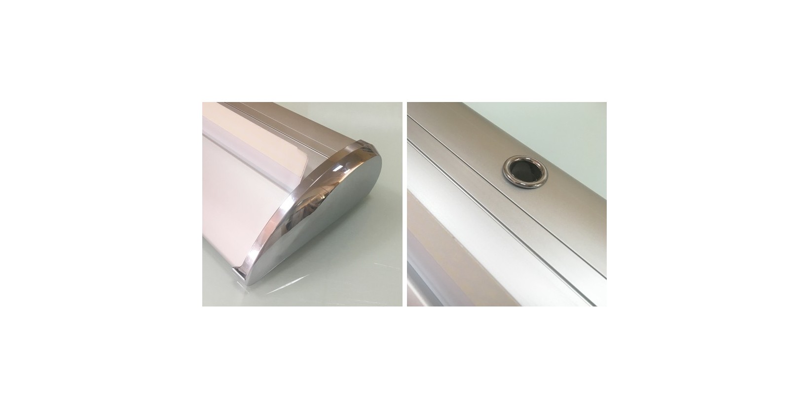 Unser Roll-up wird aus hochwertigen Materialien gefertigt. Das Gestell besteht aus mattem Aluminium mit verchromten Endstücken.
