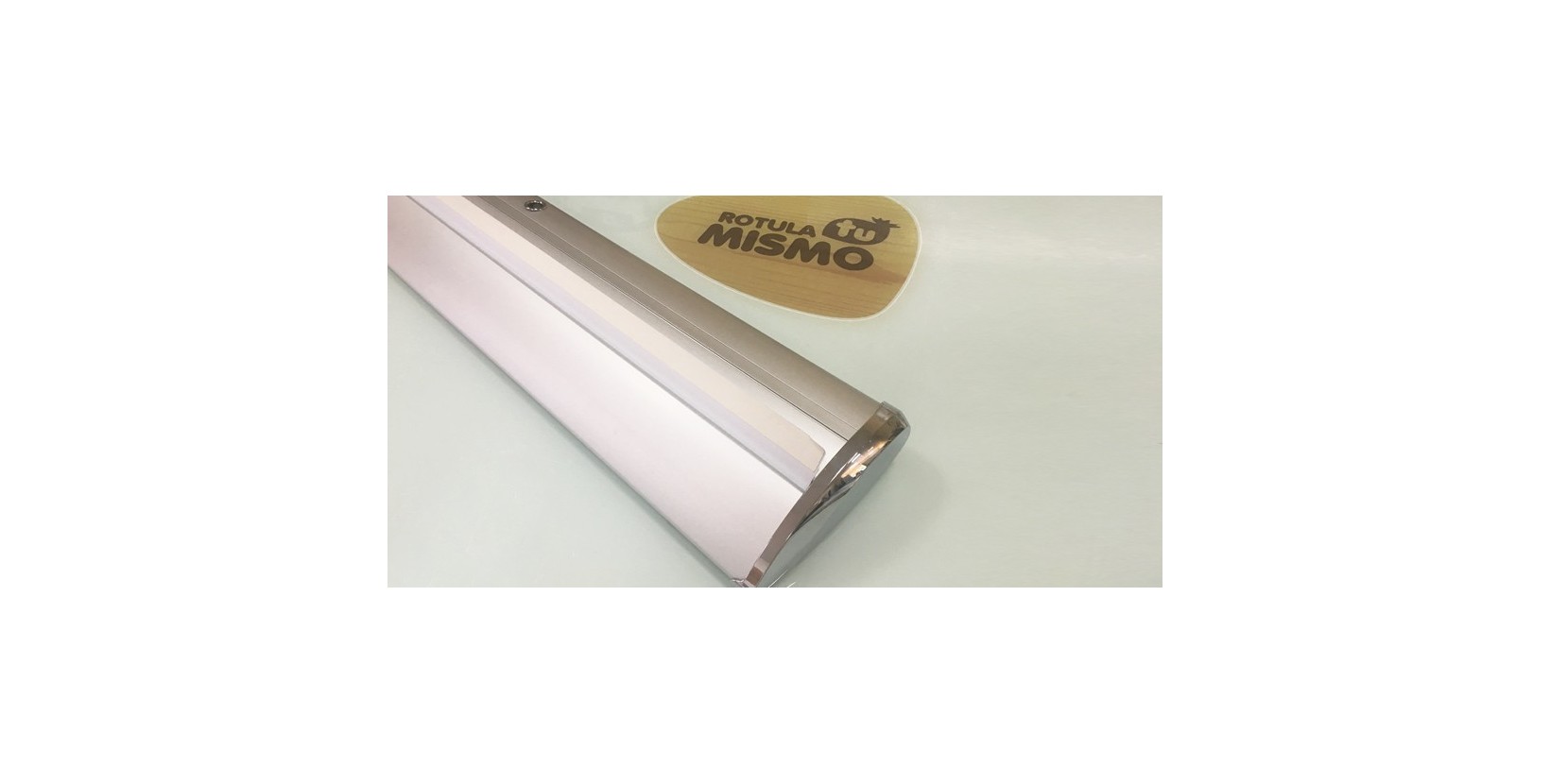 Hochwertiges Roll-up. Modell aus matt-silbernem Aluminium mit verchromten Abschlussleisten. Leichtes und elegantes Produkt zu einem wirtschaftlichen Preis. Eine einfache und praktische Möglichkeit, Botschaften überall zu kommunizieren. Druckgröße: 85 x 200 cm / 100 x 200 cm