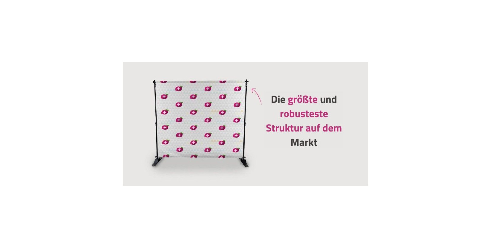 Das Banner lässt sich schnell und unkompliziert aufstellen. Die leichte Struktur sorgt für einfachen Transport, sodass Sie in wenigen Minuten einsatzbereit sind.