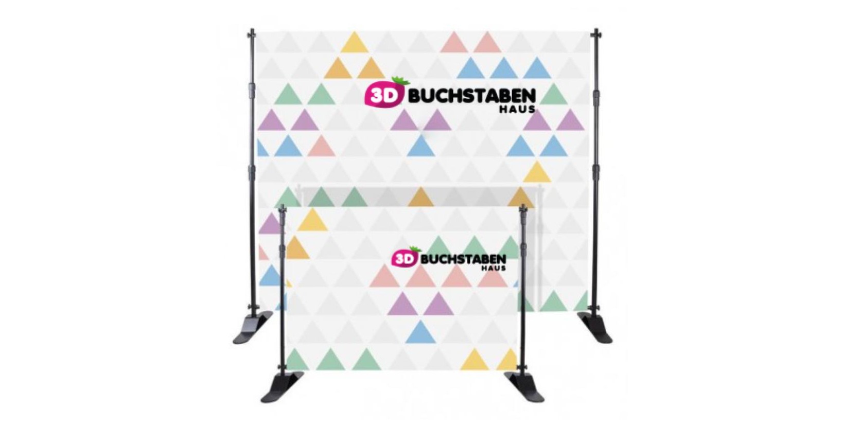 Unser ausziehbares und anpassbares Werbebanner wird auf 100 % Polyester-Werbeplane bedruckt. Das Teleskopgestell lässt sich flexibel von 185 x 100 cm bis maximal 318 x 261 cm (Breite x Höhe) einstellen und passt sich so jeder Veranstaltung oder Raumgröße optimal an.
