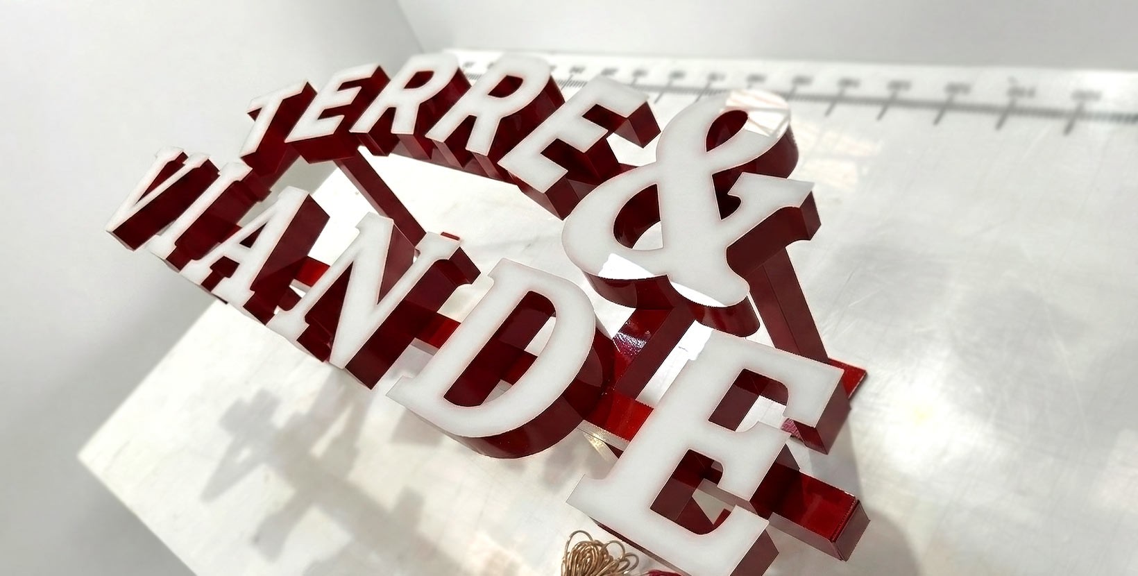 Die Beleuchtung unserer Leuchtbuchstaben kann garantiert zwischen 6500 und 10000 Lux (mit weißem Frontal) liegen. Wir streichen die Innenräume weiß, um ein reines und ausgewogenes Licht zu gewährleisten.
