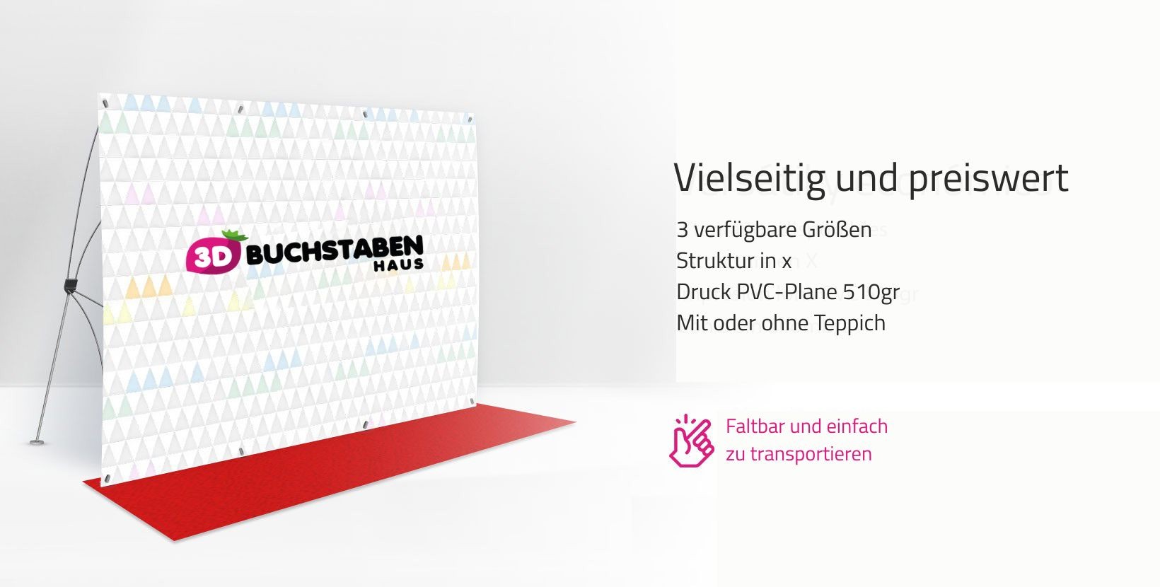 Eine hochwertig bedruckte Plane mit optionalem Gestell, rotem Teppich und Accessoires.