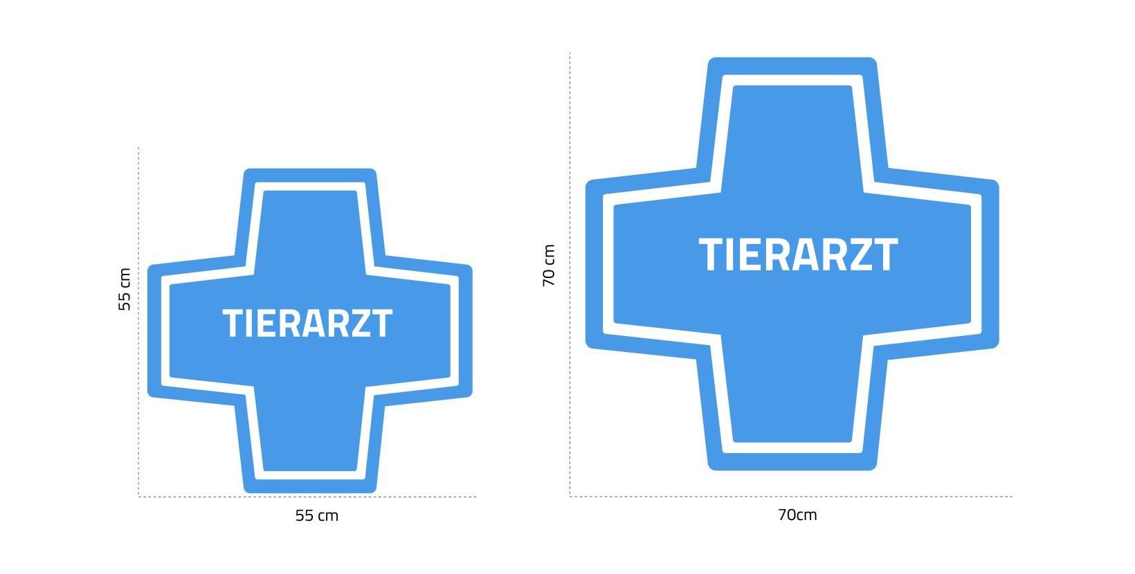 Tierarztkreuz mit LED-Beleuchtung für Tierkliniken, erhältlich in zwei verschiedenen Größen: 55 x 55 cm und 70 x 70 cm.