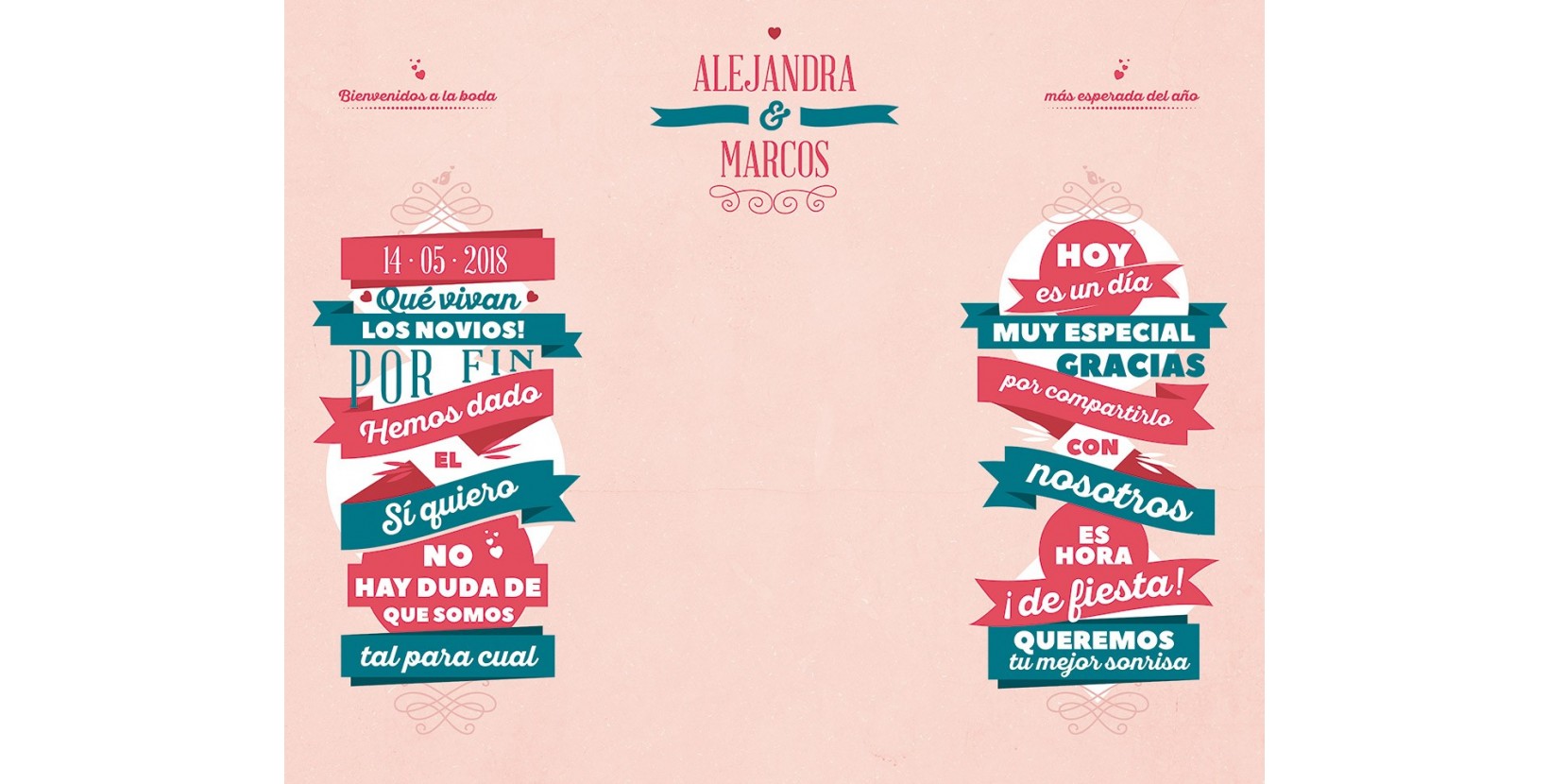Una de las últimas tendencias en photocalls (o fotocol) para bodas. Elige el nombre de cada uno de los novios, la fecha de la boda, para que tus invitados capten ese día tan especial en sus fotos.