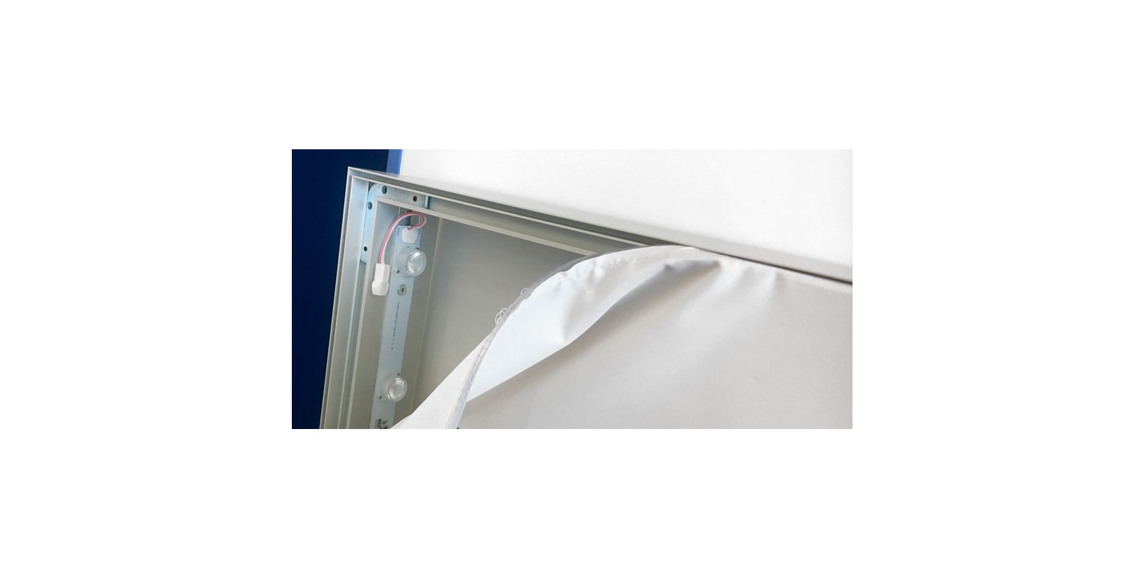 Die Textilflächen sind stets perfekt gespannt, da wir standardisierte Werte für die Verarbeitung des Silikonrands verwenden. Für neue Textilien geben Sie einfach die Gesamtbreite und -höhe Ihres doppelseitigen Textiltotems an, und wir liefern passgenaue Grafiken.