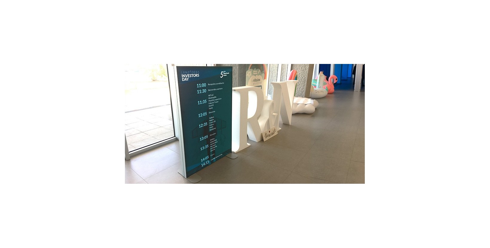Das Totem wird mit flexiblen UVI-Tinten auf 135 g Textil gedruckt und besitzt ein seidenmattes Satin-Finish. Die feuerhemmende Folie entspricht allen europäischen Normen und sorgt für gleichmäßige Ausleuchtung ohne sichtbare LED-Punkte, im Unterschied zu vielen anderen Displays.